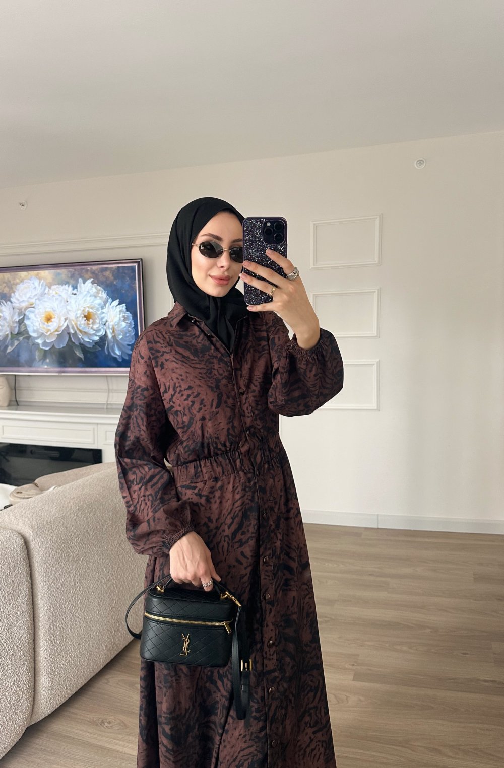 • Bymn Ekoseli Elbise Sütlü Kahve
