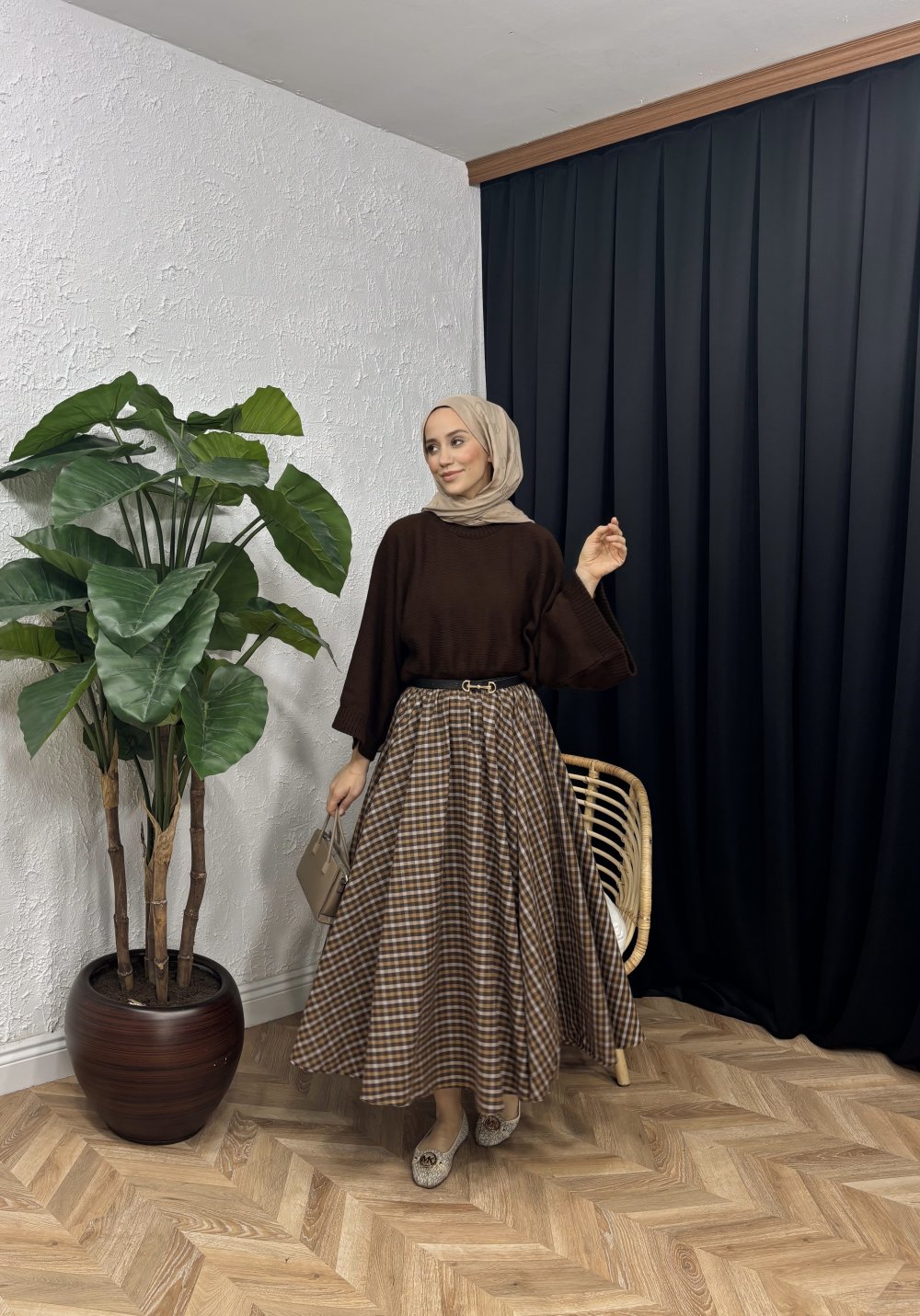 Ekoseli Etek Camel