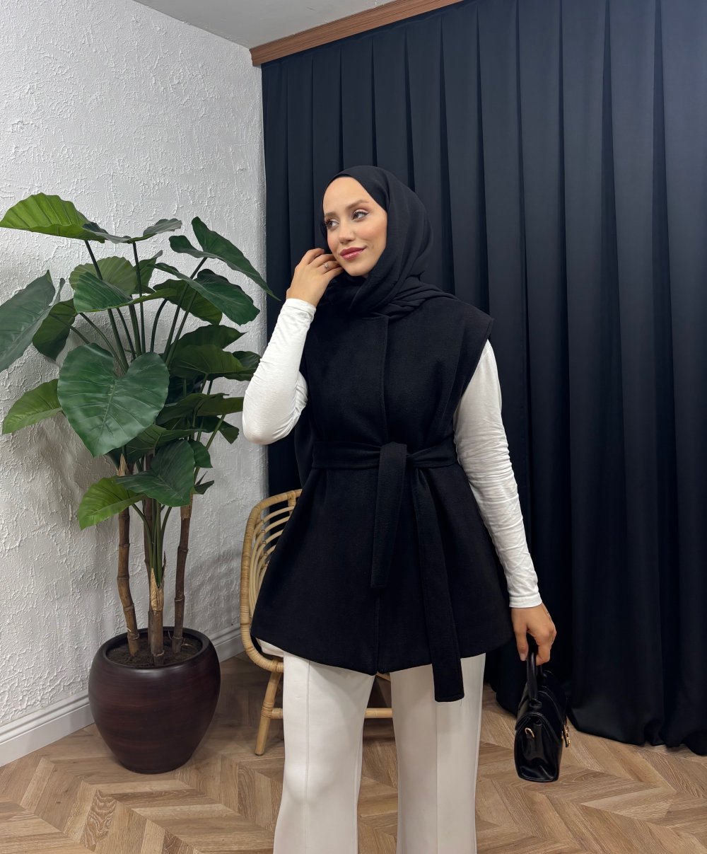 Ellun Kaşe Yelek Siyah