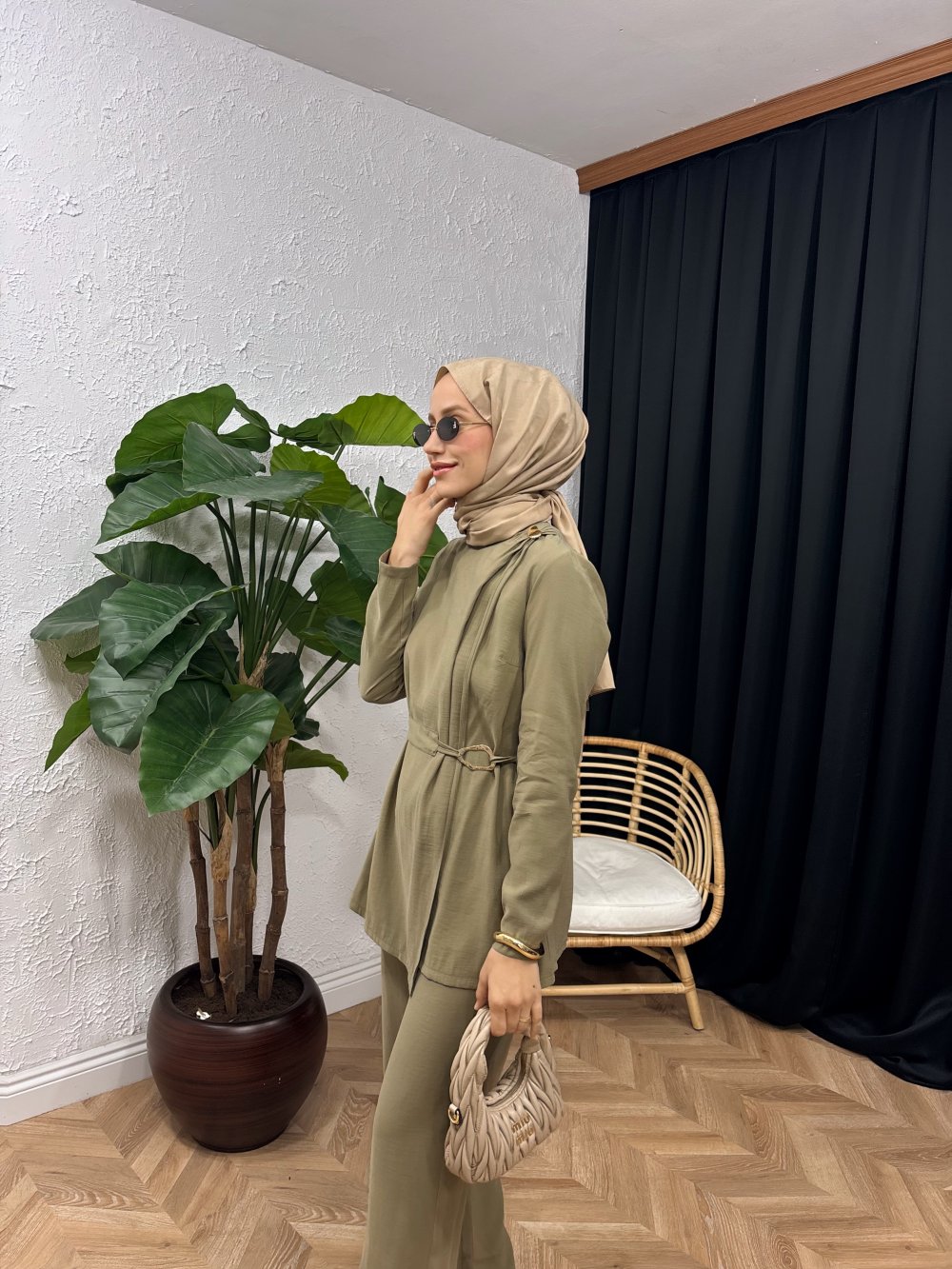 Esil Broş Detaylı Tensel Takım Yağ Yeşili