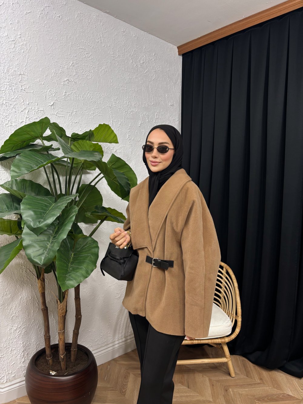 • Kemer Tokalı Kaşe Kaban  Füme