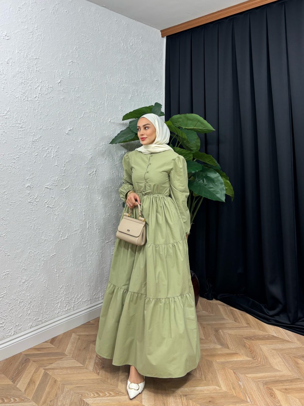 Louna Önü Düğmeli Elbise Mint Yeşili