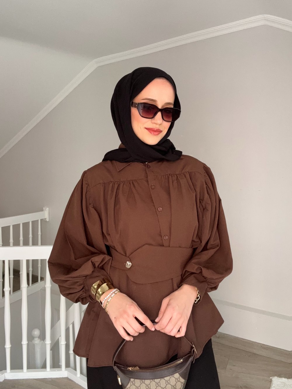Luna Kemerli Gömlek Kahverengi