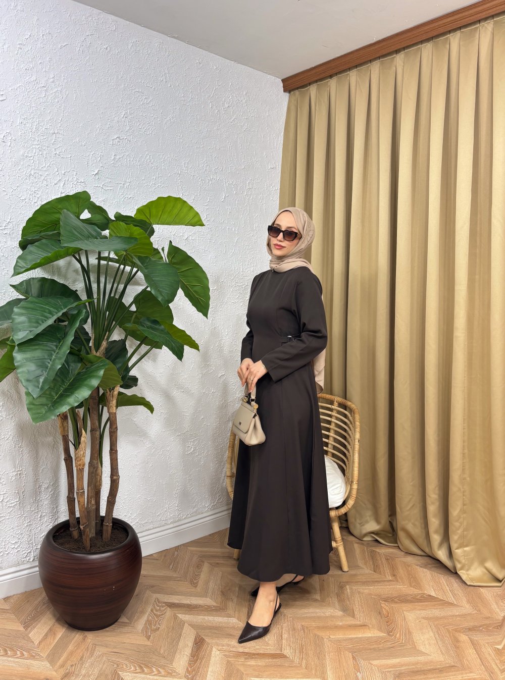 Majy Tokalı Elbise Kahverengi