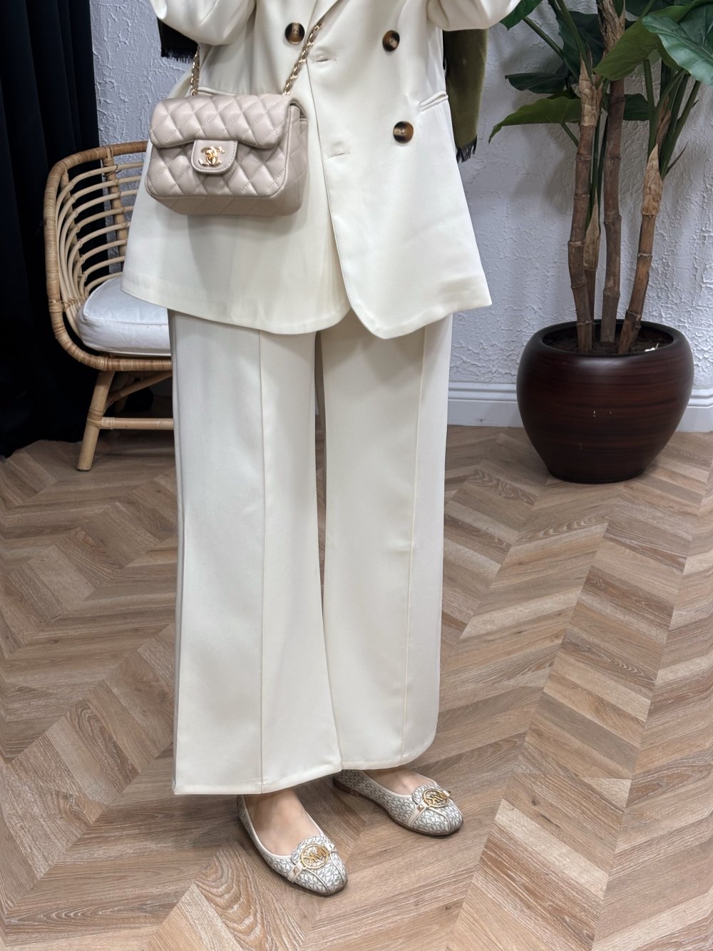 • Çimalı beyaz Pantolon  Beyaz