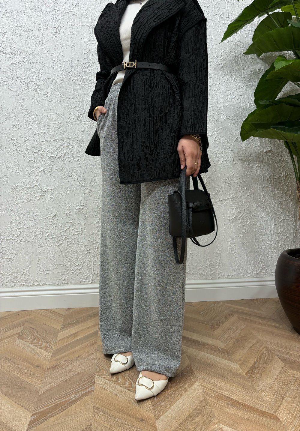 Siyah-Beyaz Çimalı Pantolon Siyah Beyaz
