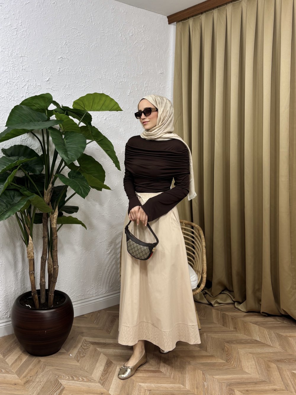 • Anvelop Bağlamalı Etek Taş Rengi