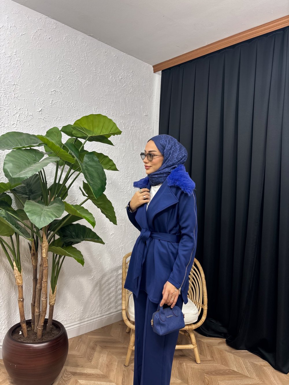 Velisse Kürk Detaylı Pantolon Takım Saks Mavisi