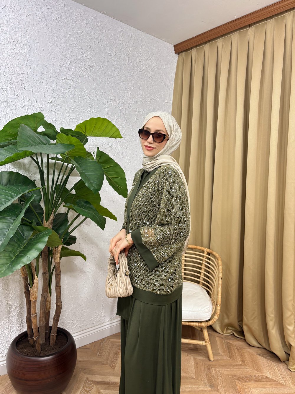 Wood Payetli Pantolon Takım Haki