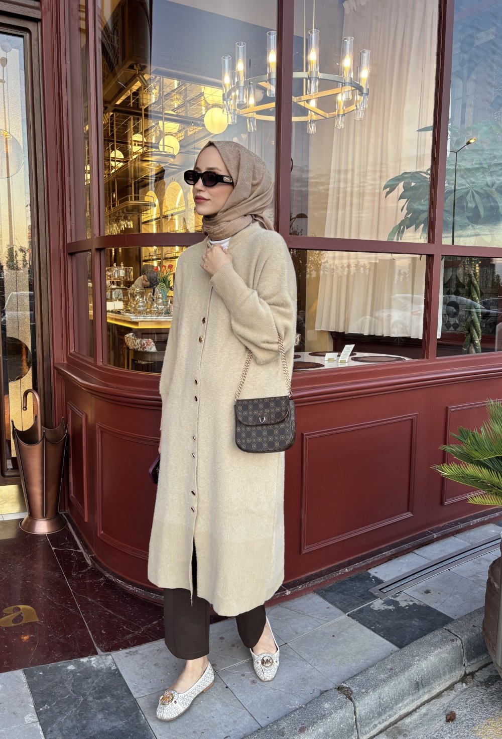 Wowe Uzun Düğmeli Hırka Camel